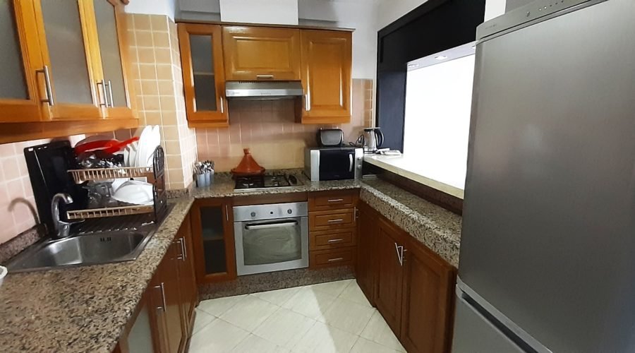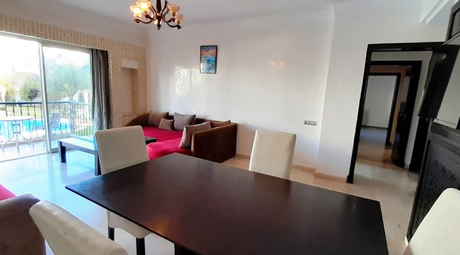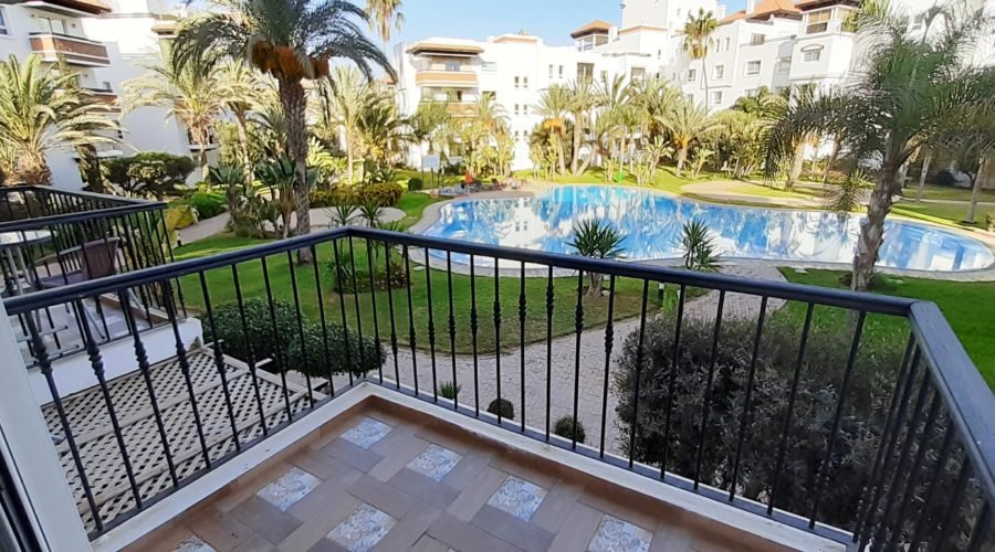 Apartment in residence 29 number 06 on the 2nd floor, located in an idyllic setting between the sea and the pool, in the heart of Agadir Marina. Composed of 2 bedrooms with splendid balconies, 2 large living rooms, two bathrooms, equipped kitchen, Air conditioning, Tv and wifi.