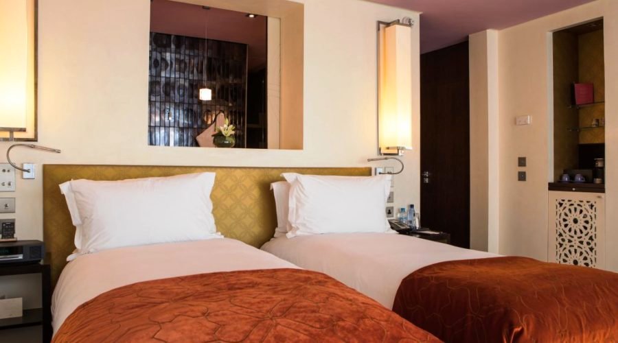 Chambre 33m², Deux lits simples, Téléviseur LED, Mini-bar, Machine à café, Système audio BOSE WAVE, Espace bureau, Coffre, WiFi gratuit..